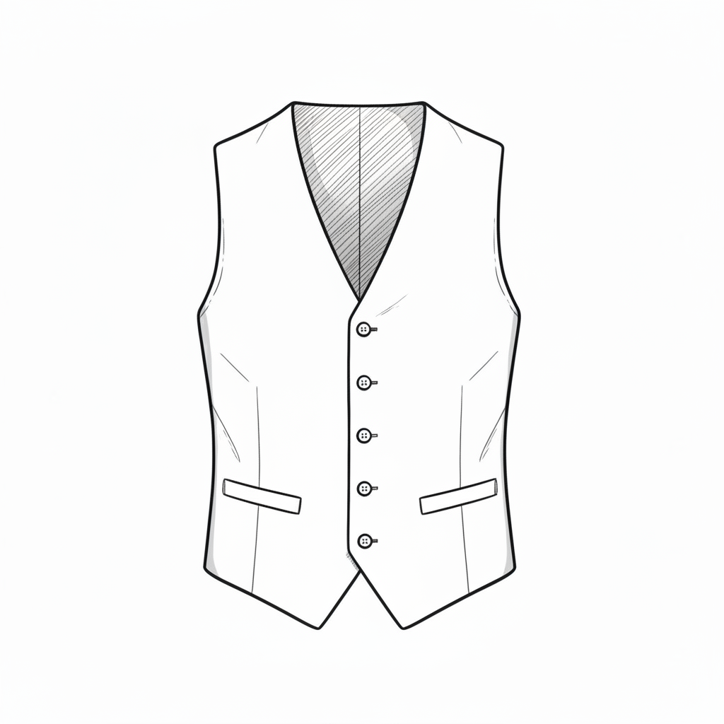 Kamizelka na miarę do zestawu 3-częściowego lub solo — fason i zapięcie pod całość.