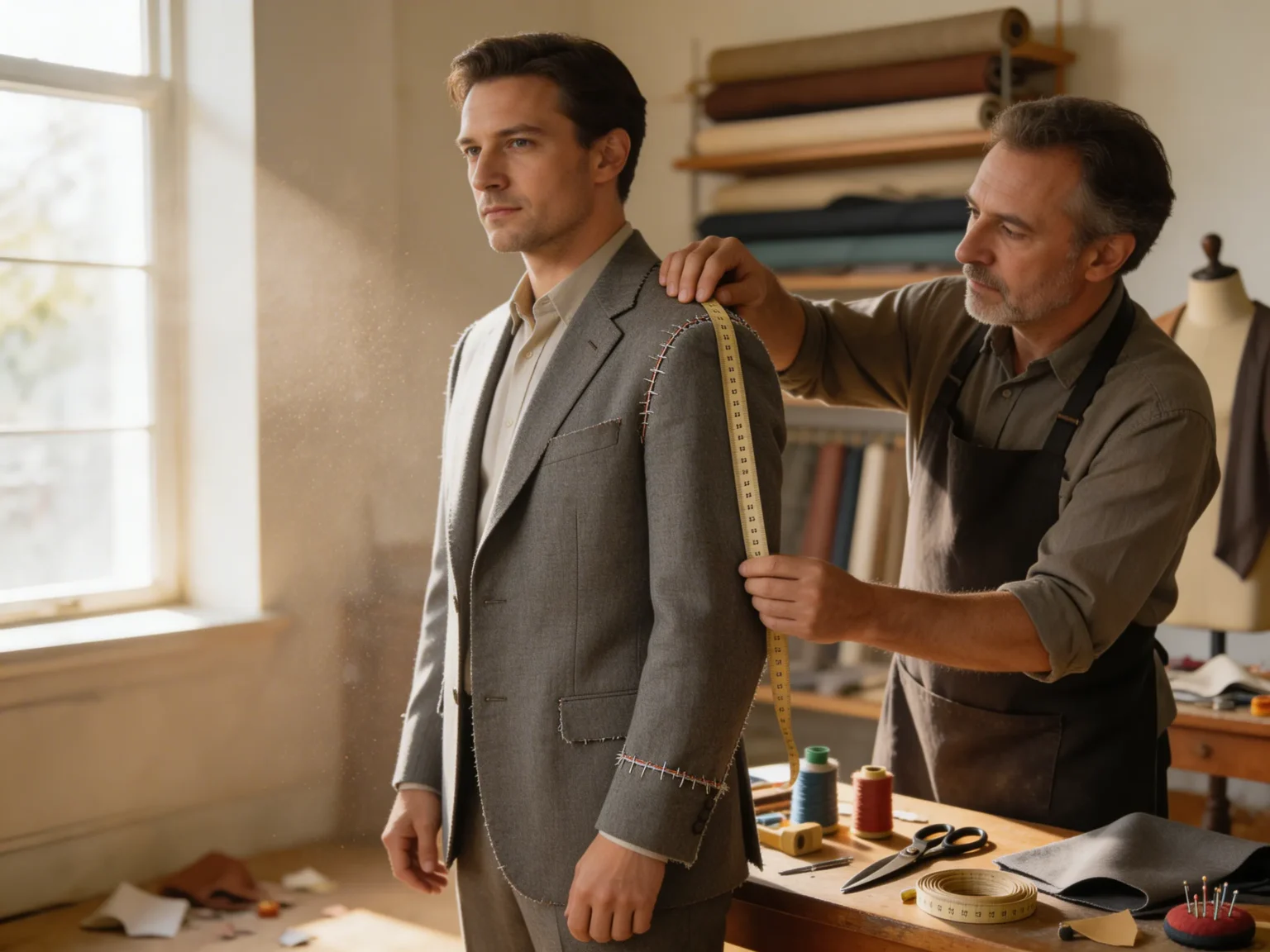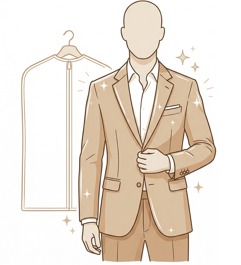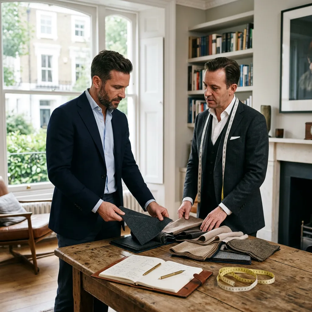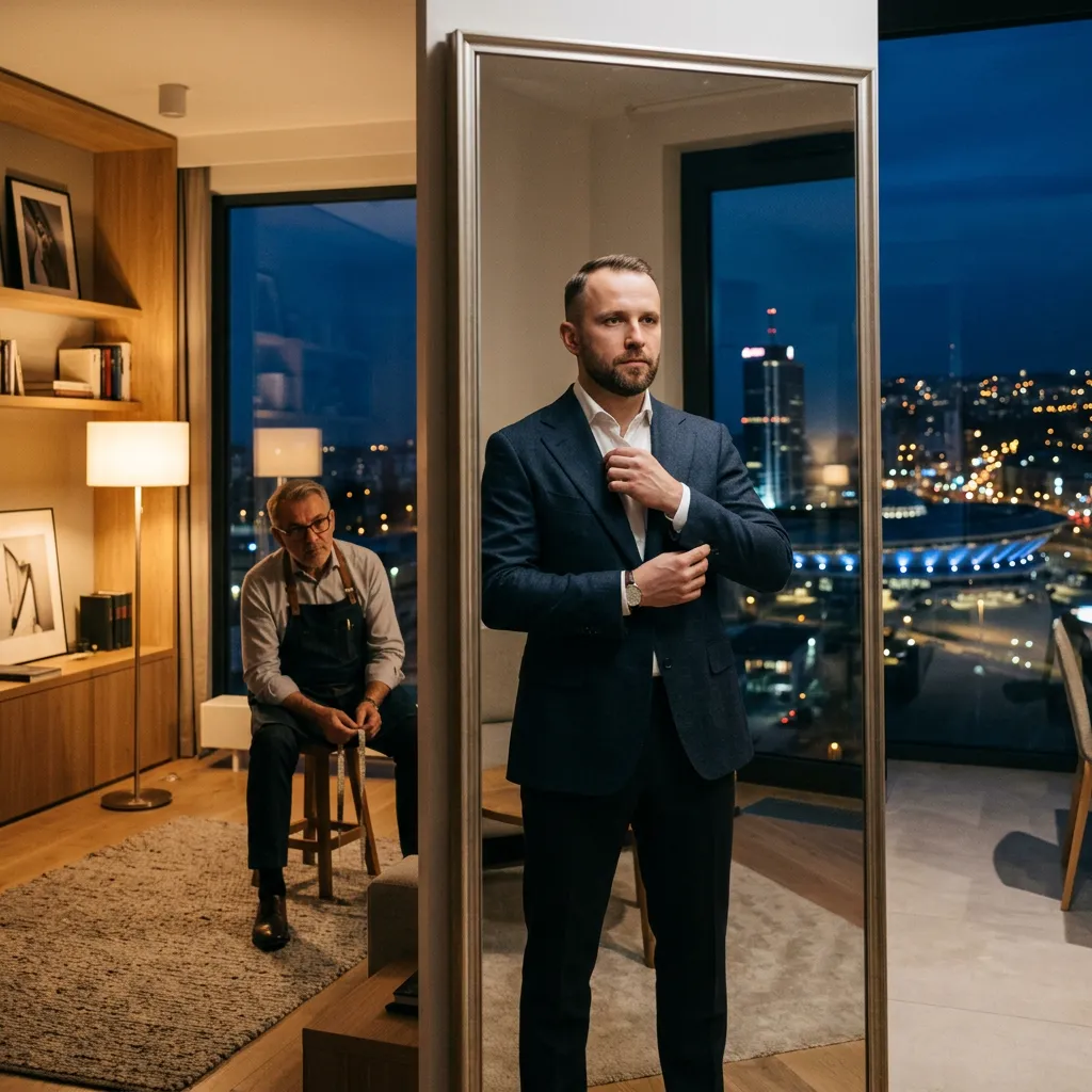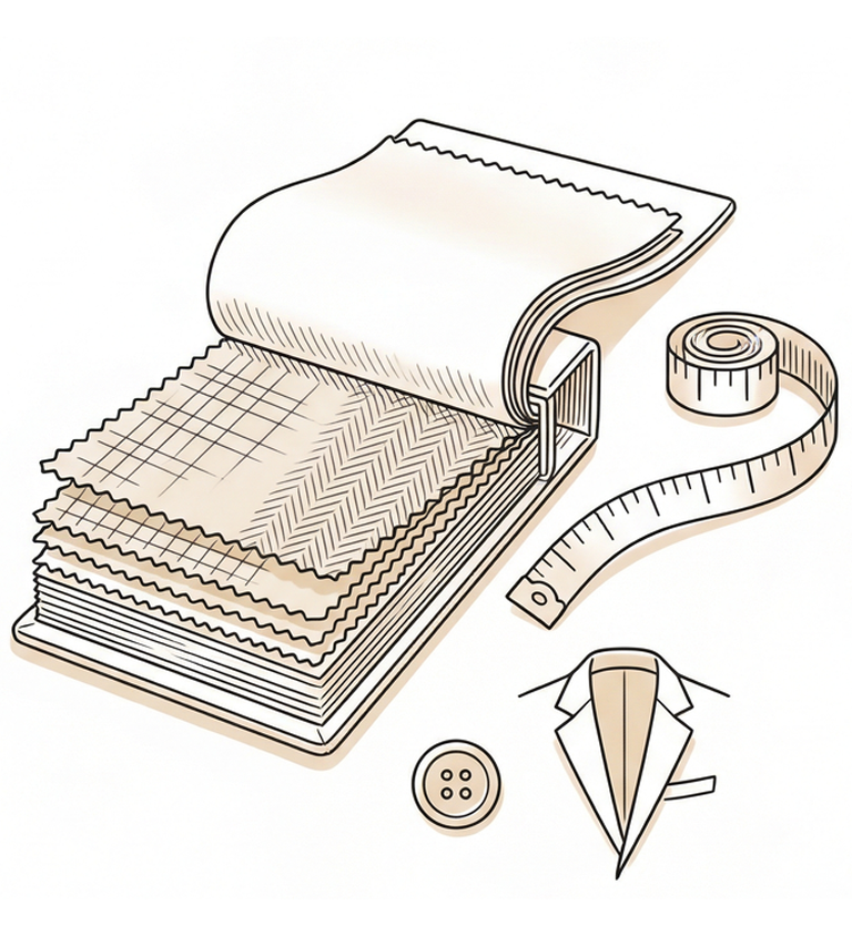 Przyjeżdżam do domu lub biura, zdejmujemy miarę, pomagamy dobrać krój i tkaninę. Szyjemy na miarę garnitury, marynarki i spodnie — z dopracowaniem detali i przymiarkami, aż wszystko leży idealnie.