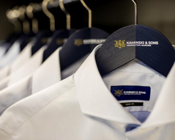 Koszula szyta na miarę — kołnierz, mankiety i tkanina dobrane do pracy i okazji.